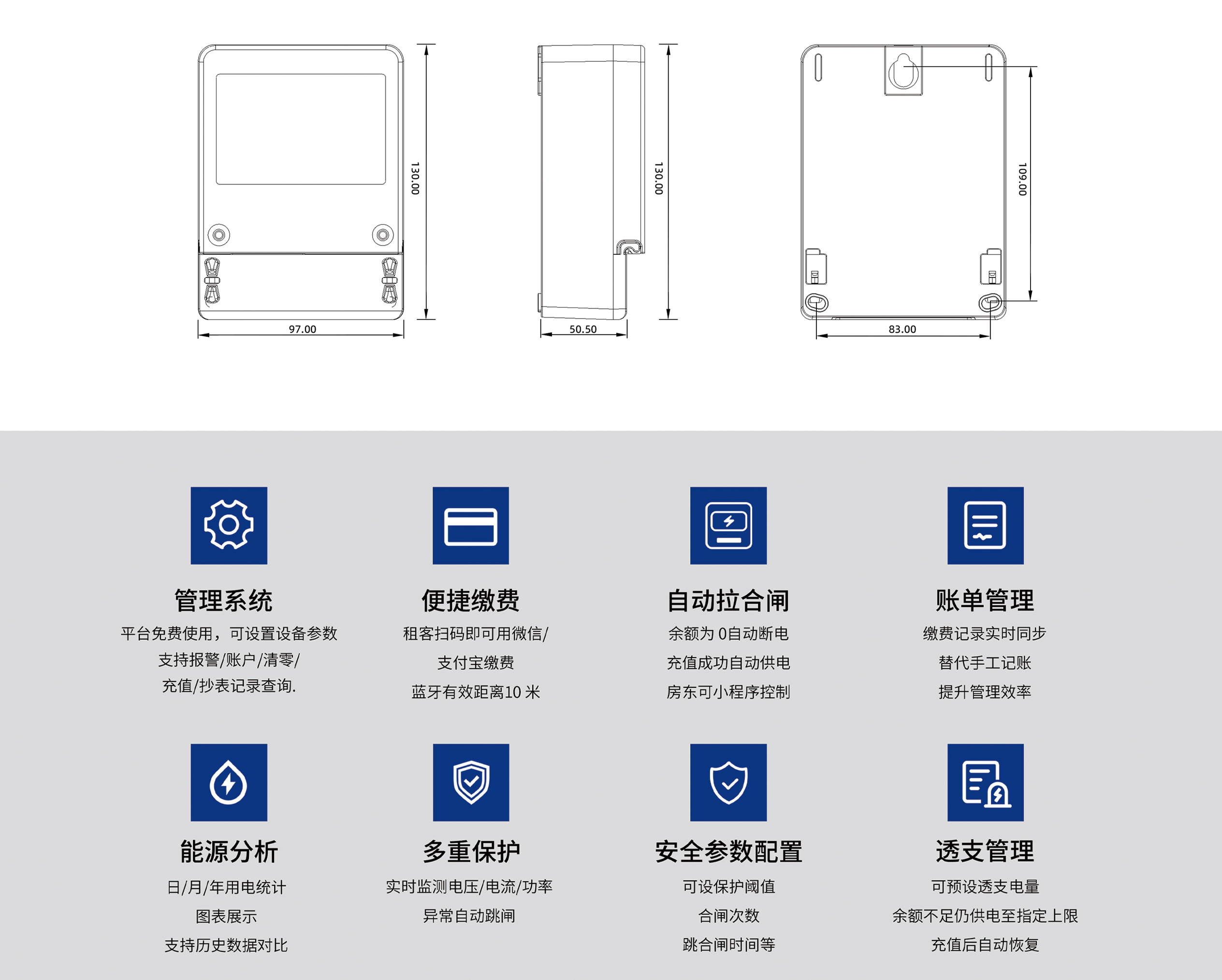 本產品運用先進的單片機處理系統,實現數據的采集、處理與存儲。替換傳統 IC 卡預付費電表,采用藍牙通信功能,能夠通過藍牙與手機連接...